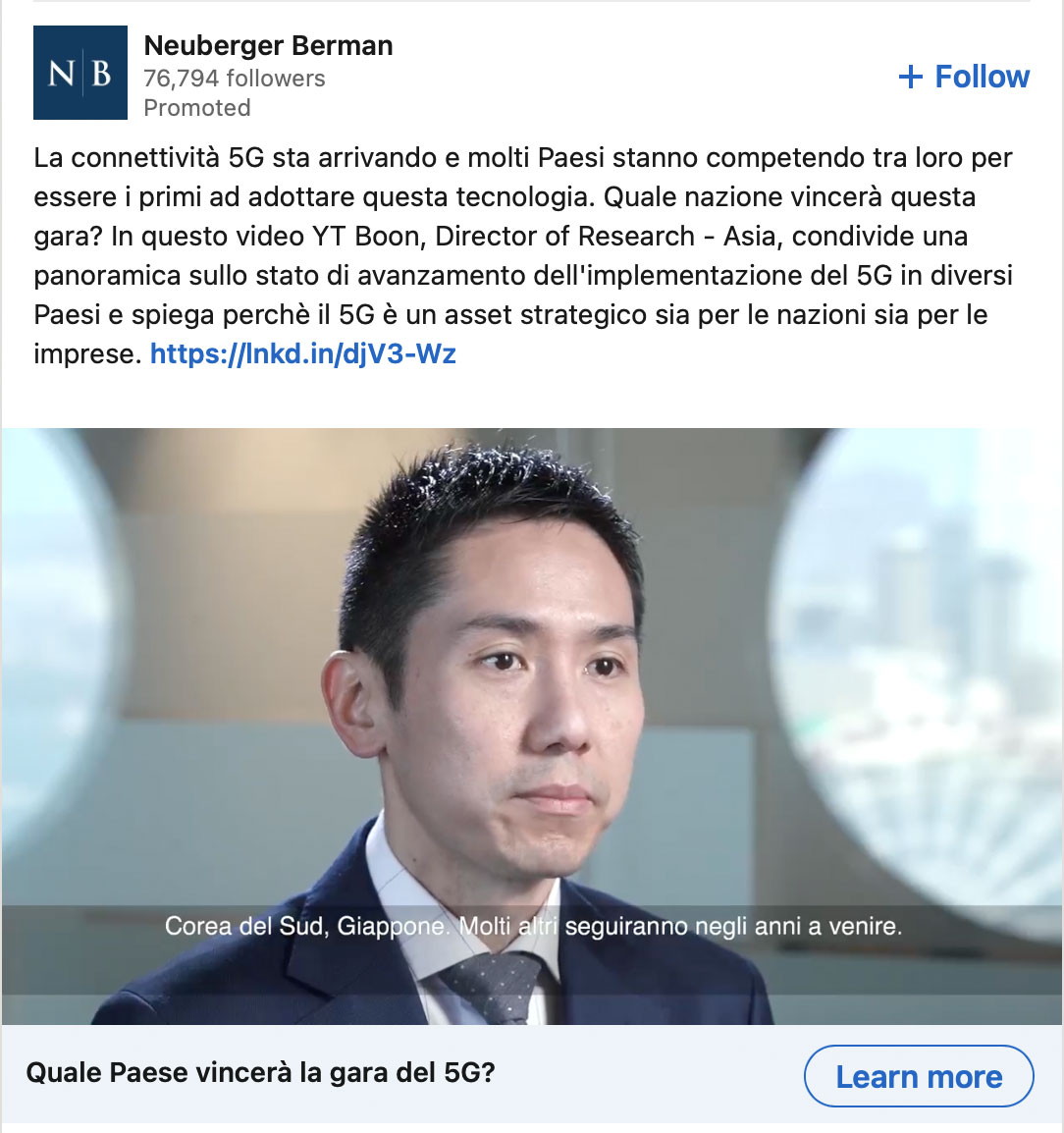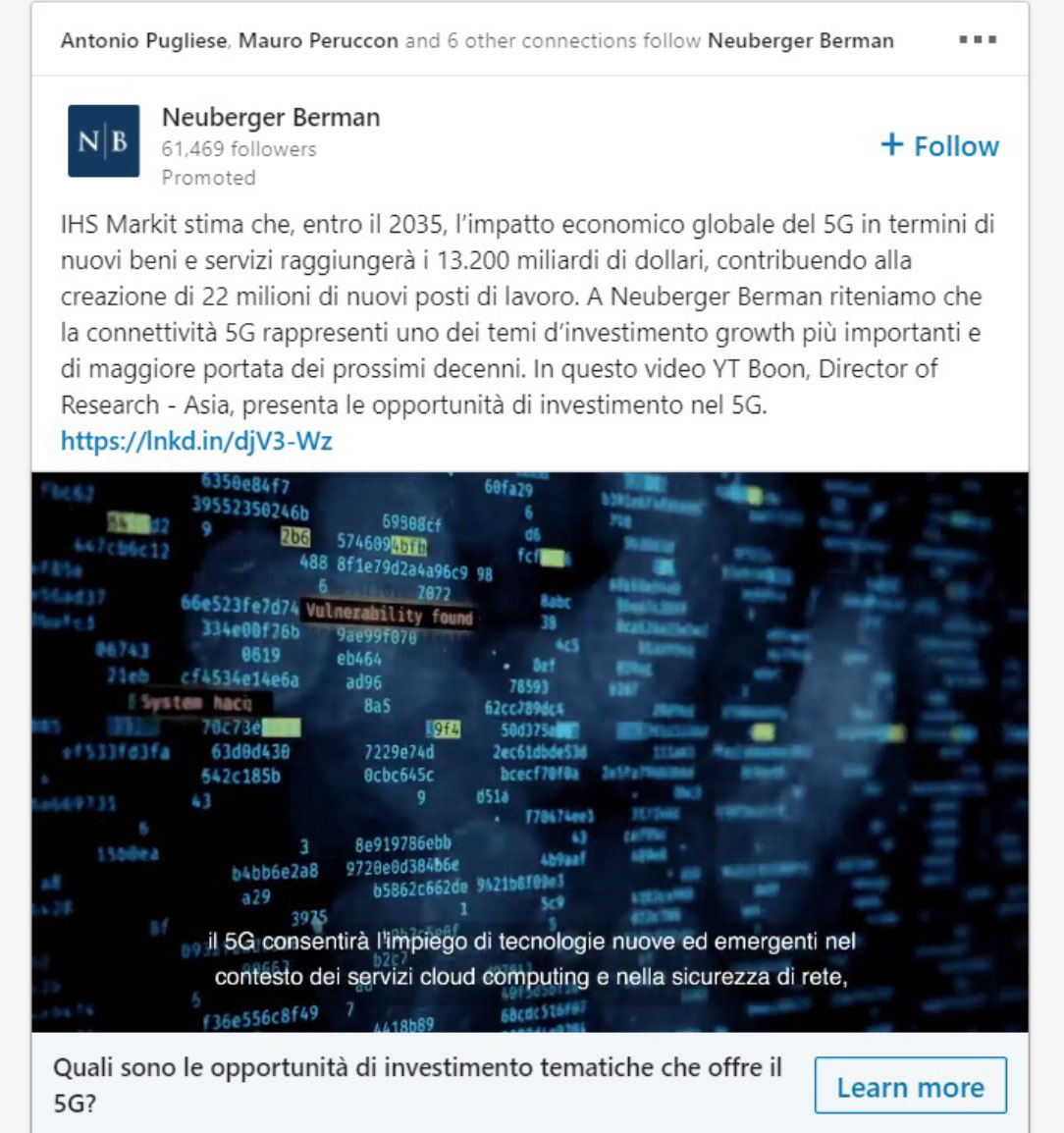 Our research found that LinkedIn has a reach of 93% among Italian discretionary portfolio managers and fund selectors, and 65% among Italian financial advisers. We built three segments (intermediary, discretionary and institutional) which we targeted for this campaign.